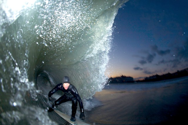 Way back when, when New Jersey saw its last proper South Swell, Tyler Thompson dropped in on TransWorld Surf’s lensman Seth Stafford. The water was cold, the air was cold and… the sun went down?